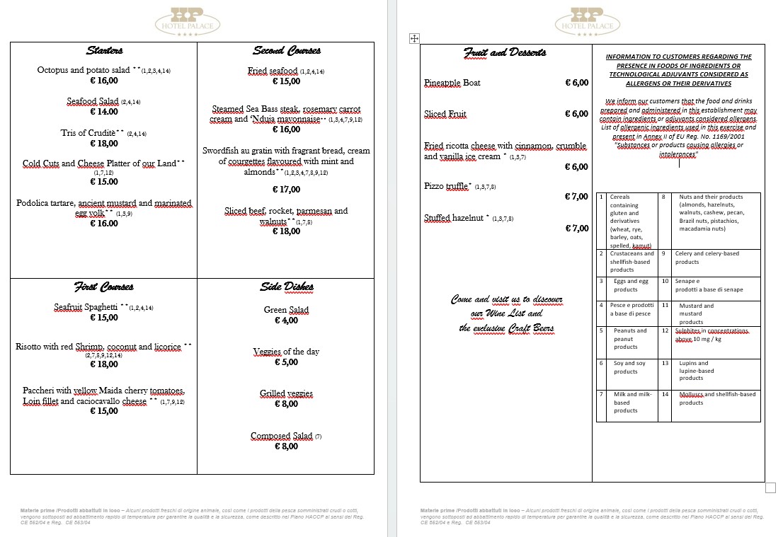 Das Hotel Palace, ein 4-Sterne-Hotel, verfügt über ein großes Restaurant mit Meerblick, das sich ideal für alle Arten von Zeremonien, Geschäftsessen oder Abendessen eignet. Es ist auch für Gäste außerhalb des Hotels geöffnet.