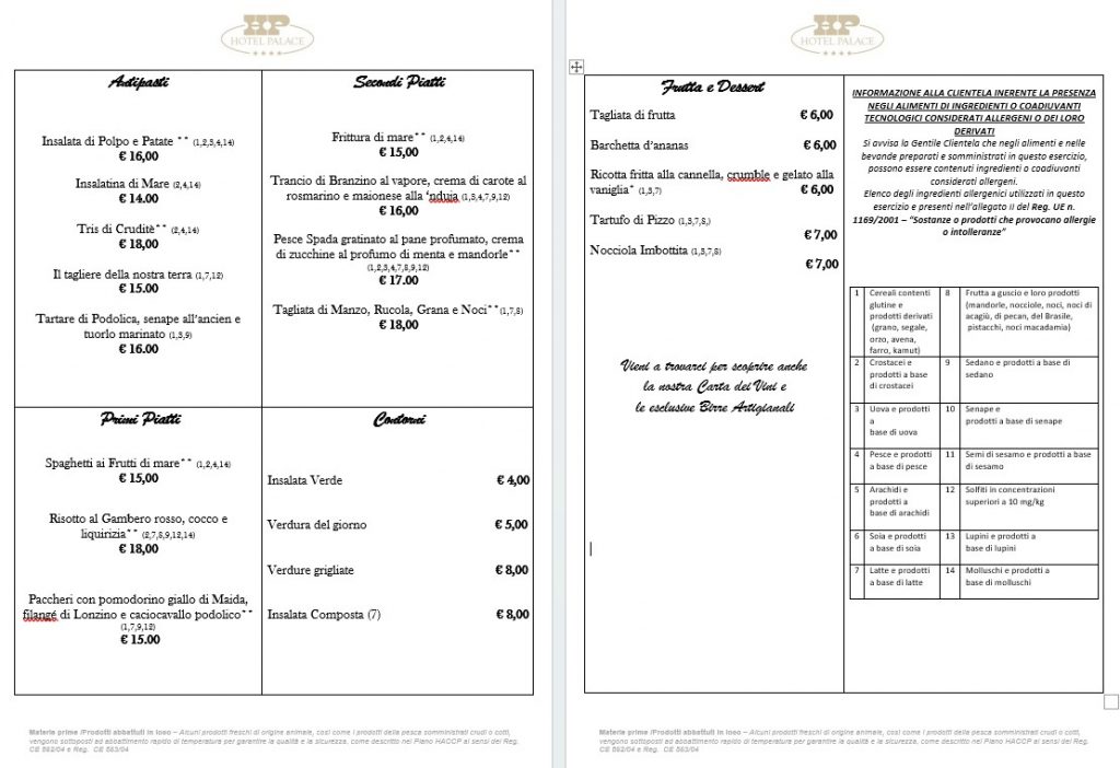 L’Hotel Palace, albergo 4 stelle, dispone di un ampio ristorante vista mare, ideale per cerimonie di ogni genere, pranzi o cene di lavoro, semplici rendez-vous. E’ aperto anche per gli ospiti esterni all’Hotel.