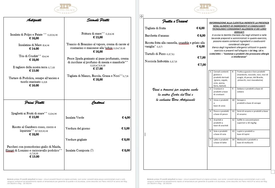 The Hotel Palace, a 4-star hotel, has a large sea-view restaurant, ideal for all kinds of ceremonies, business lunches or dinners, simple rendez-vous. It is also open for guests outside the Hotel.